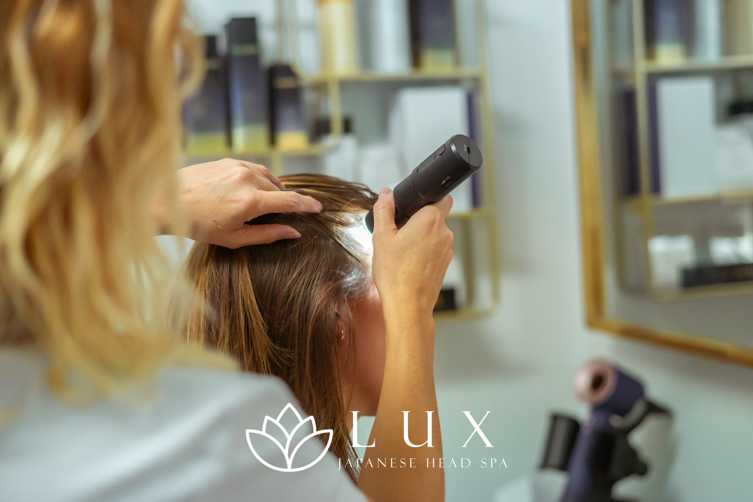 The ritual concludes with a gentle towel-dry or optional blow dry, followed by a moment to rest and rehydrate.
